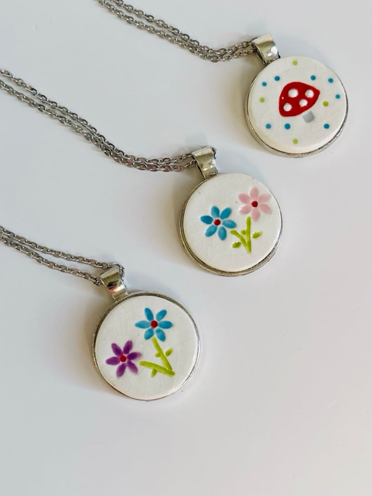 ceramic round on a zinc alloy base setting stainless steel 20" chain with lobster style clasp